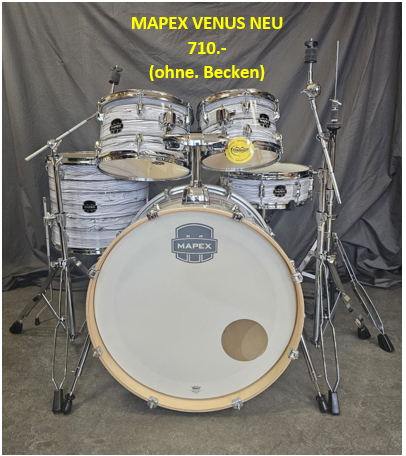 Die Drumsets sind Occasionen und frisch ab Service, natürlich komplett mit Becken und Stuhl, frisch gestimmt und mit neuen Fellen. Die Lieferung kostet pauschal 120.-.